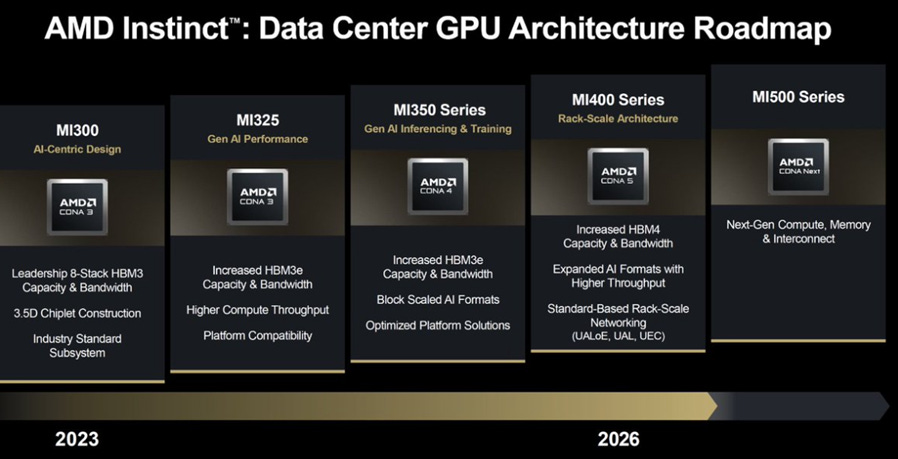 AMD also unveiled their MI400 and MI500 series in more detail, which can be referenced in the two images below: